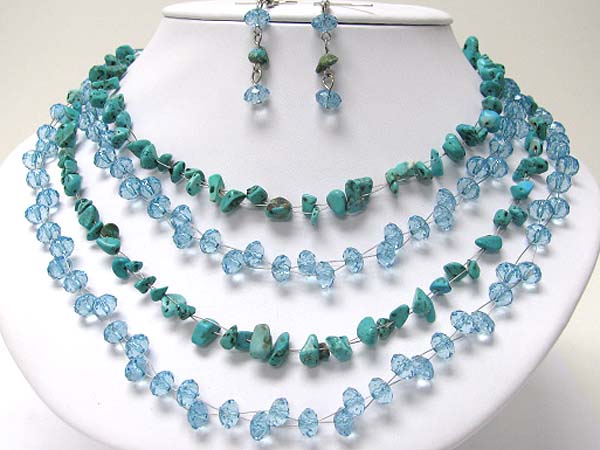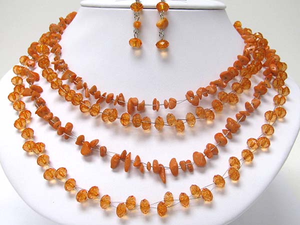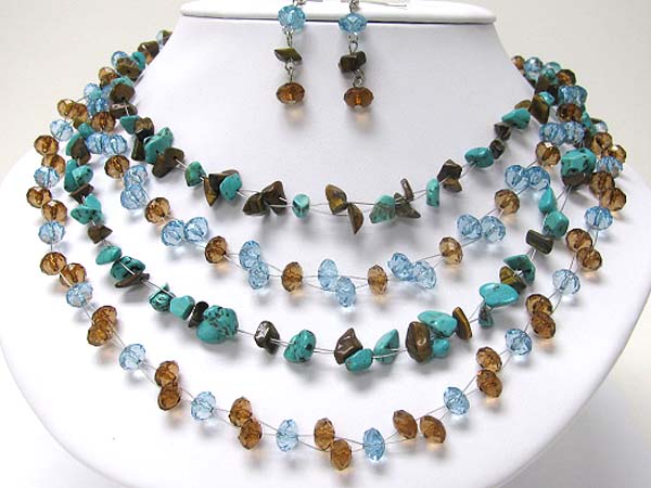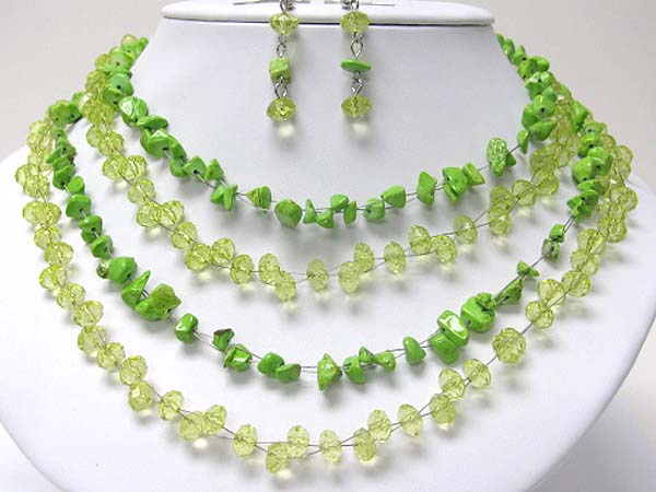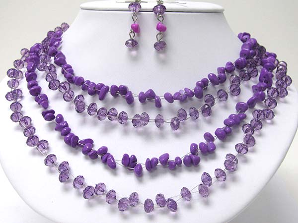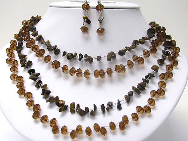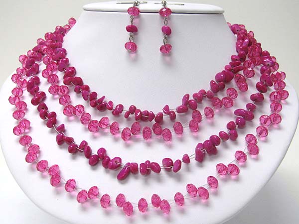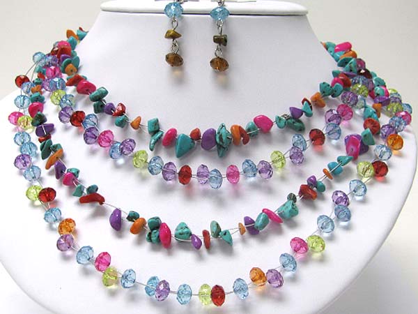 WHOLESALE MULTI ROW FACET GLASS STPNE AND NATURAL CHIP STONE NECKLACE SET 365067