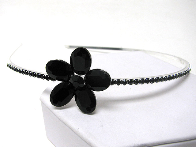 Flower accent rhinestone headband