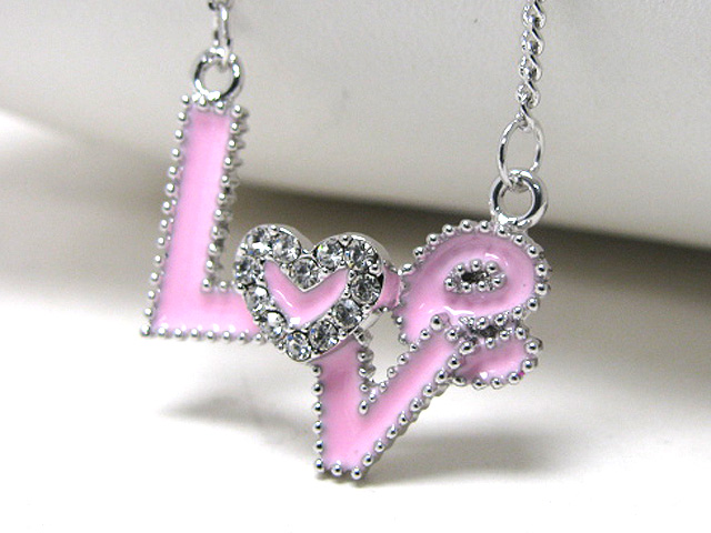 Made in korea whitegold plating crystal and epoxy love chain tied necklace -valentine