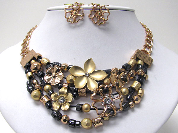 WHOLESALE MULTI METAL FLOWER AND BEAD DECO NECKLACE EARRING SET 365586