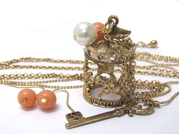 WHOLESALE 3D METAL CAROUSEL AND KEY LONG NECKLACE EARRING SET 365771