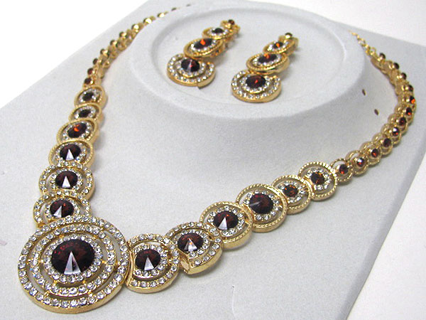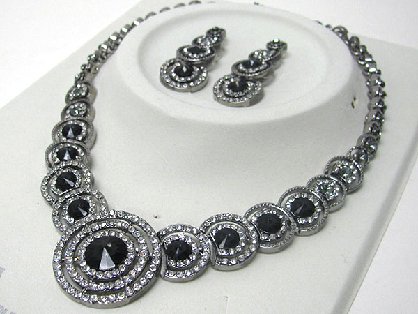 WHOLESALE LUXURIOUS AUSTRIAN CRYSTAL LINE - MULTI CIRCLE LINK PARTY NECKLACE EARRING SET 365802