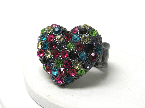 WHOLESALE MULTI CRYSTAL STUD METAL HEART STRETCH RING 365867
