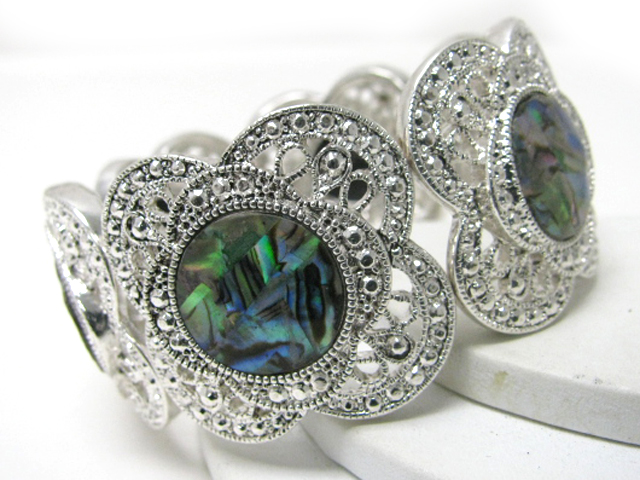 WHOLESALE MOTHER OF PEARL DECO MARCASITE LOOK METAL STRETCH BRACELET 365888