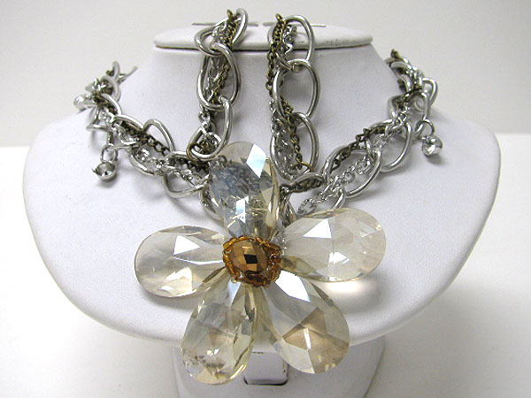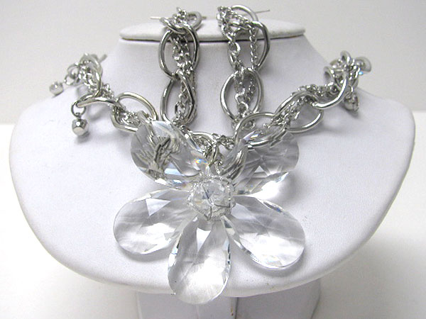 WHOLESALE LARGE ACRYLIC FLOWER AND METAL CHAIN NECKLACE EARRING SET 365978