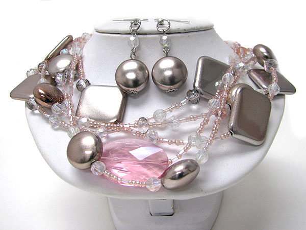 WHOLESALE MULTI SHAPE ACRYLIC AND SEED BEAD MIX NECKLACE EARRING SET 366002