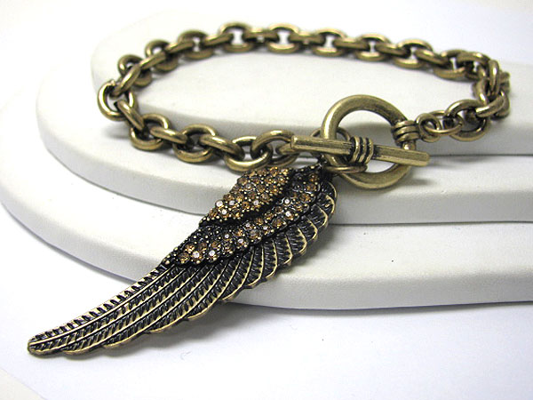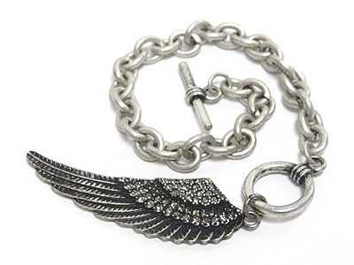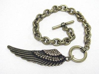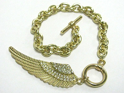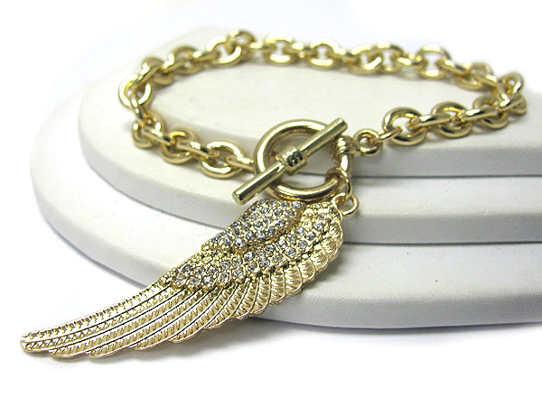 Crystal stud angel wing charm toggle bracelet
