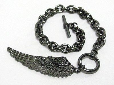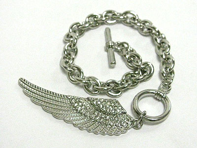 WHOLESALE CRYSTAL STUD ANGEL WING CHARM TOGGLE BRACELET 366222