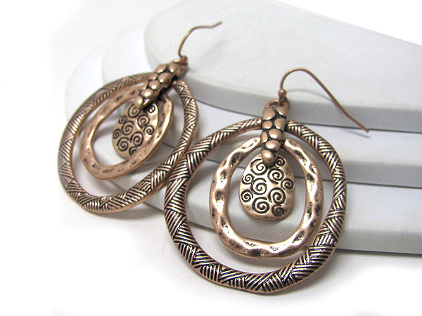 WHOLESALE THREE TEXTURED METAL HOOP EARRING - HOOPS 366271