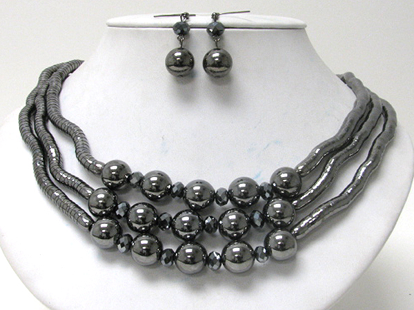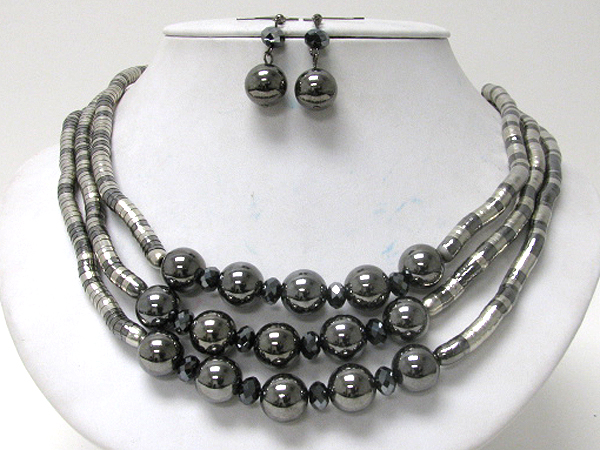 WHOLESALE ARCHITECTURAL METAL BALL AND TRIPLE SNAKE CHAIN LINK NECKLACE EARRING SET 366716