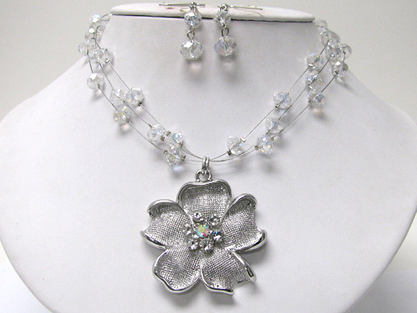 Crystal center metal flower and wired illusion necklace earring set