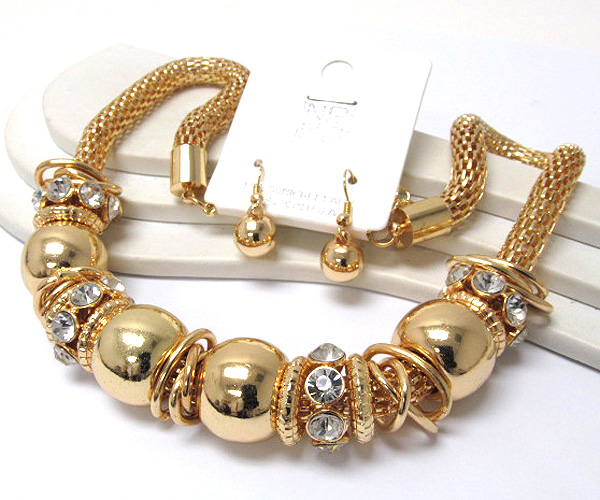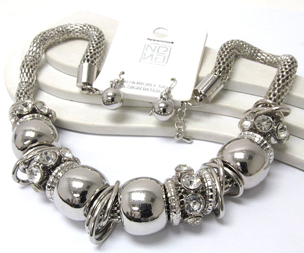 WHOLESALE CRYSTAL RING JOINT METAL BALL LINK NECKALCE EARRING SET 366991