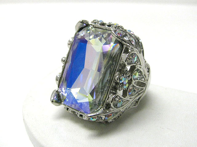 WHOLESALE FACET GLASS RECTANGLE AND CRYSTAL SIDE PUFFY STRETCH RING? 367079