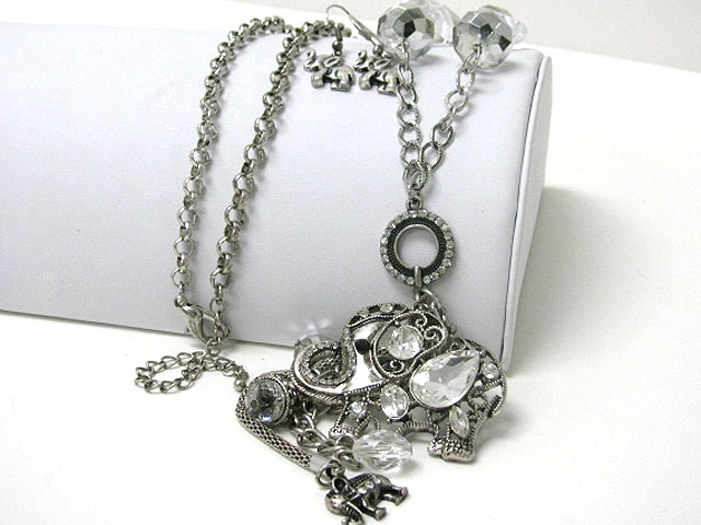 WHOLESALE CRYSTAL STUD ELEPHANT CHARM DANGLE LONG CHAIN NECKLACE EARRING SET 367101