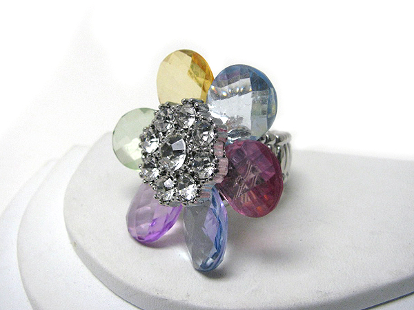 WHOLESALE CRYSTAL CENTER AND ACRYLIC PETAL STRETCH RING 367228