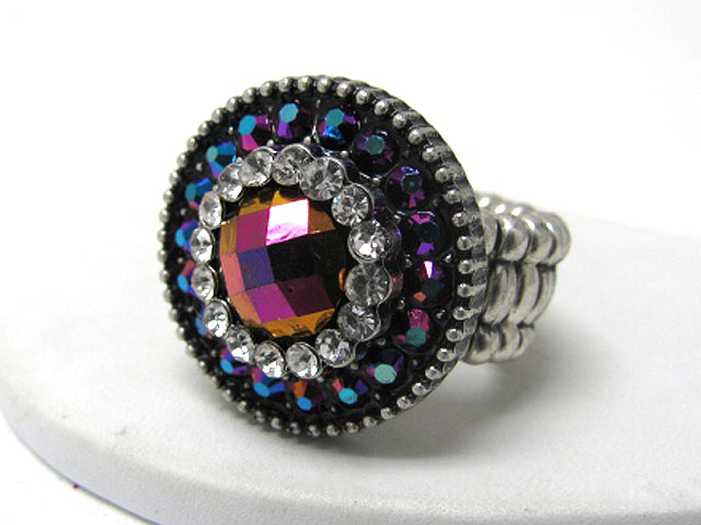 WHOLESALE CRYSTAL AND METALLIC STONE COMBO ROUND STRETCH RING 367235