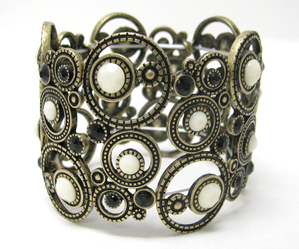 WHOLESALE MULTI METAL BUBBLE AND ACCENT STONE LINK STRETCH BRACELET 367342
