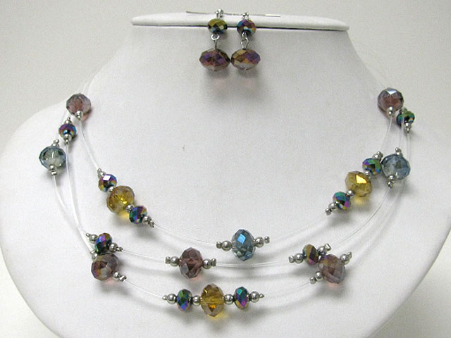 Triple row facet glass beads link illusion necklace earring set
