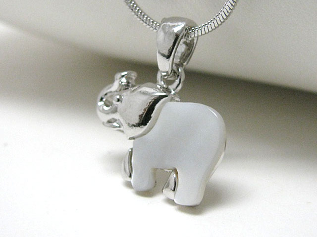 WHOLESALE MADE IN KOREA WHITEGOLD PLATING MOTHER OF PEARL ELEPHANT PENDANT NECKLACE 367522