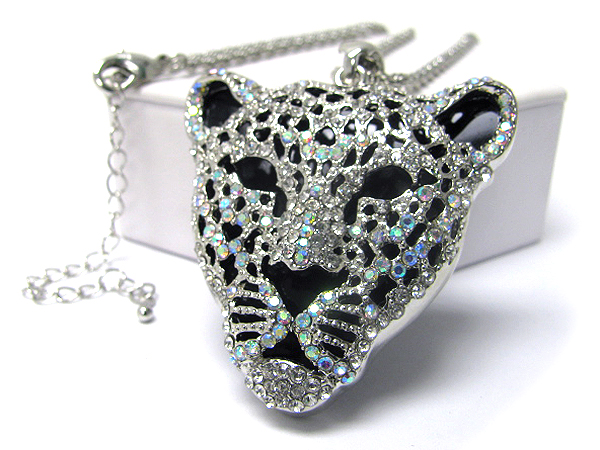 WHOLESALE CRYSTAL STUD LARGE LEOPARD PENDANT LONG NECKLACE 367527