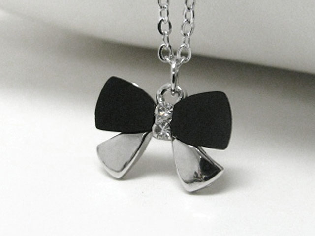 WHOLESALE MADE IN KOREA WHITEGOLD PLATING CRYSTAL AND MOTHER OF PEARL RIBBON PENDANT NECKLACE 367716