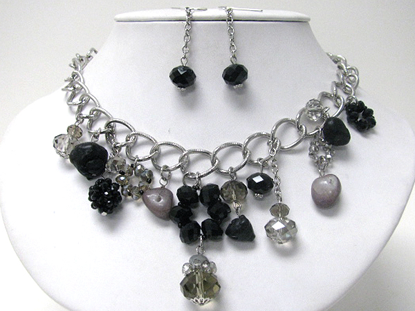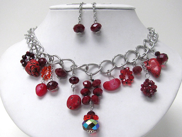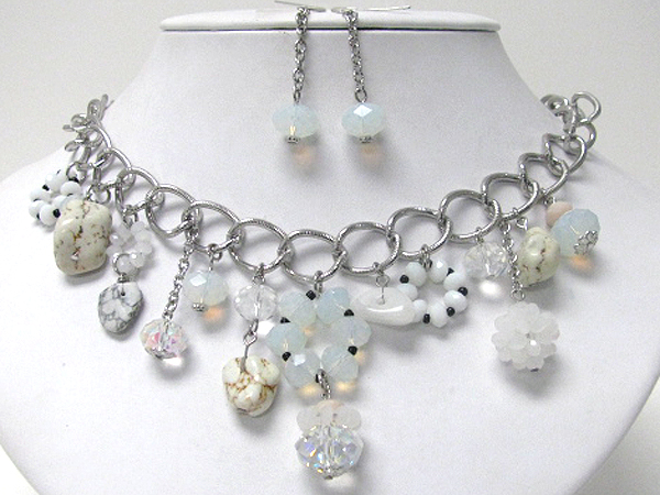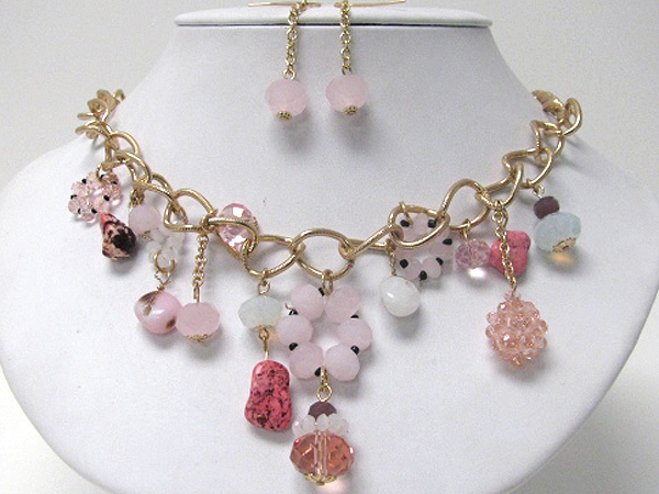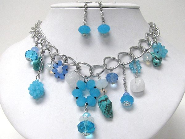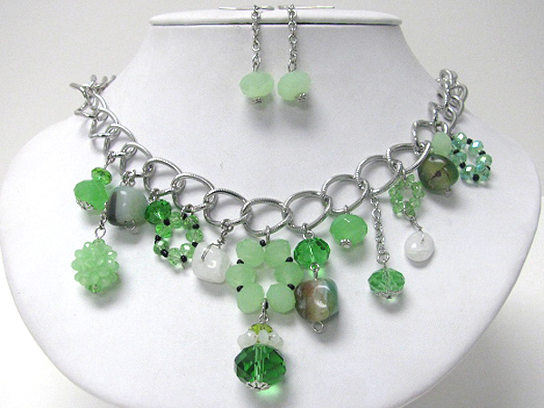 Multi glass beads drop chain necklace earring set