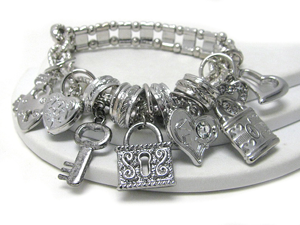 Multi lock and key charm spacer beads link stretch bracelet