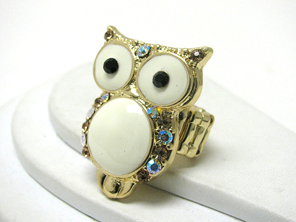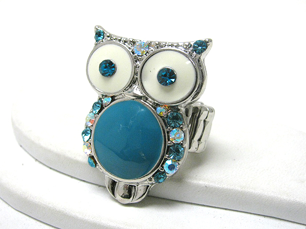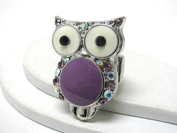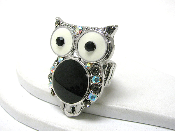 WHOLESALE CRYSTAL AND EPOXY DECO OWL STRETCH RING 367992