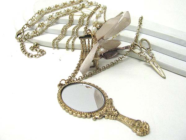 WHOLESALE HAND MIRROR AND SCISSORS CHARM LONG NECKLACE EARRING SET 368336