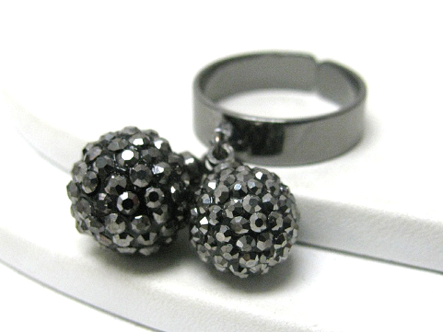 WHOLESALE CYSTAL STUD DUAL BALL DANGLE ADJUSTABLE SIZE RING 368572