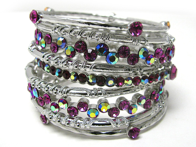 WHOLESALE STACKABLE CRYSTAL STUD METAL BANGLE SET OF 7 368686
