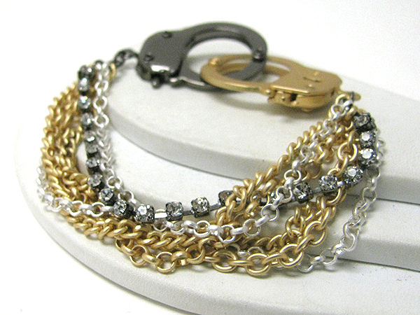 WHOLESALE MULTI CHAIN AND RHINESTONE DROP HANDCUFF NECKLACE EARRING SET 368741