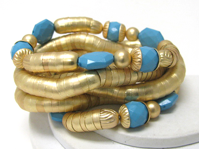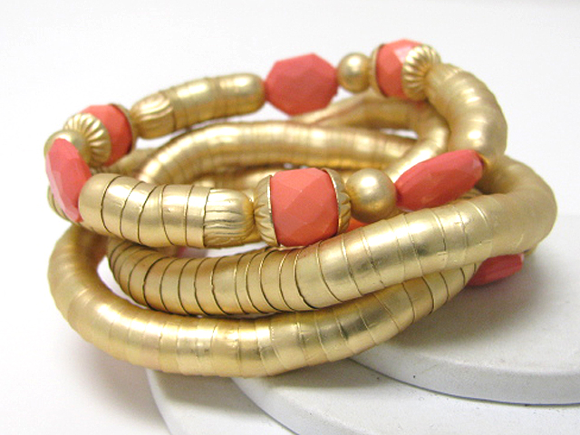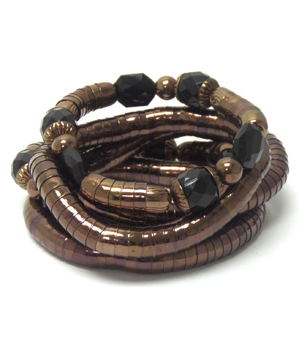 Acryl stone accent multi row massive snake chain bracelet