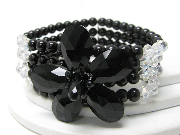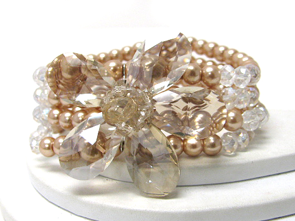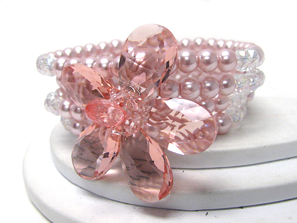 Acrylic facet flower and multi pearl stretch bracelet