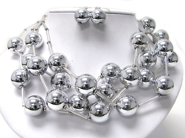 WHOLESALE MULTI ARCHITECTURAL METAL BALL AND METAL TUBE LINK NECKLACE EARRING SET 369236