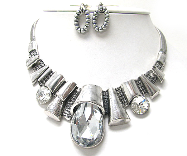 WHOLESALE FACET GLASS TERAR DROP ARCHITECTURAL METAL LINK NECKLACE EARRING SET 369261