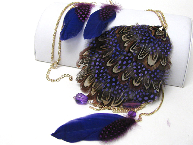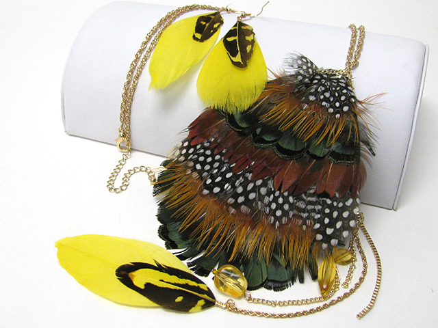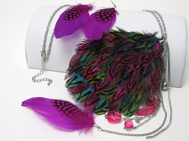 WHOLESALE 5X5 LARGE FEATHER PENDANT LONG CHAIN NECKLACE EARRING SET 369282