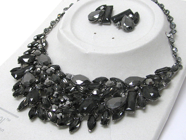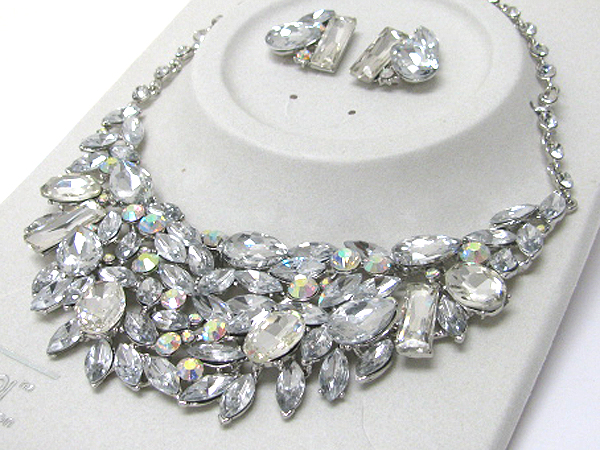 Luxurious austrian crystal line - multi shape crystal deco bib style necklace earring set