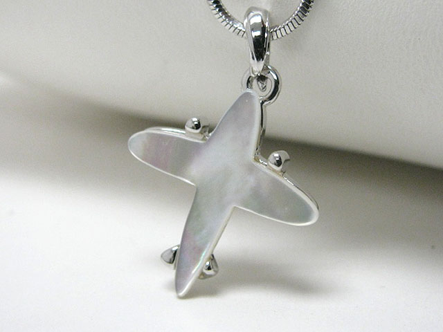 Made in korea whitegold plating mother of pearl airplane pendant necklace