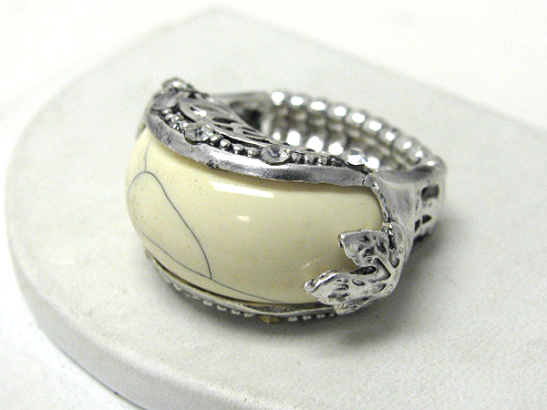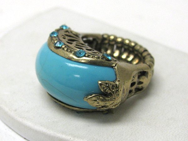 Crystal and painted stone deco stretch ring