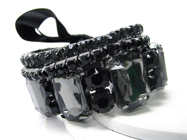 Multi crystal and acrylic stone deco triple stretch bracelet set