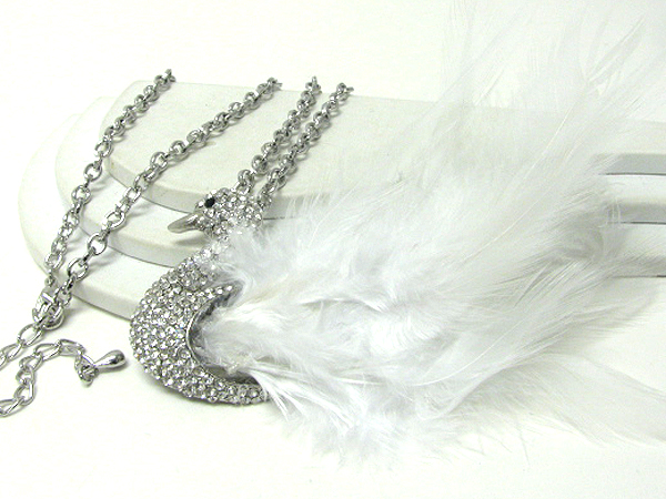 WHOLESALE CRYSTAL STUD SWAN AND FEATHER DECO WING AND TAIL NECKLACE 369993