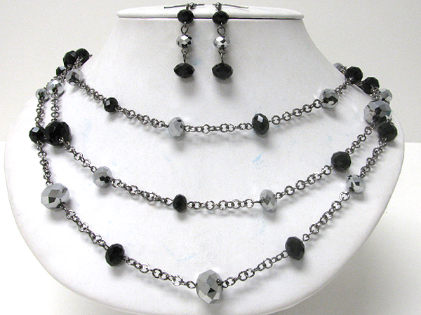 WHOLESALE GLASS STONE AND TRIPLE LAYERED CHAIN LINK STATION NECKLACE EARRING SET 370455