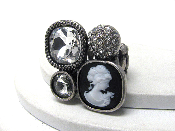 WHOLESALE ARCHITECTURAL CRYSTAL AND CAMEO DECO STRETCH RING 370521