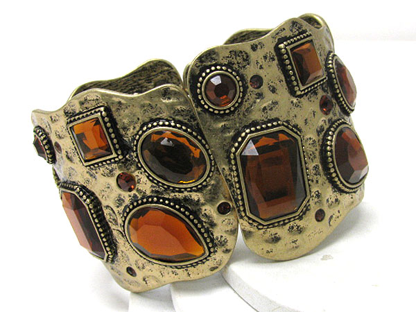 WHOLESALE GLASS STONE DECO HAMMERED METAL STRETCH BRACELET 370694