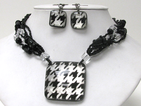 Zebra pattern square pendant multi beads necklace earring set