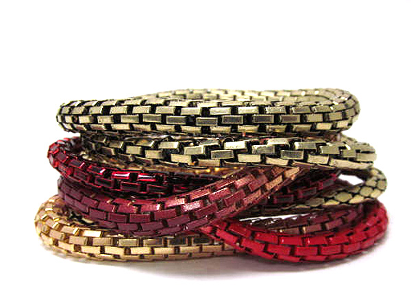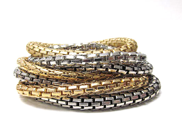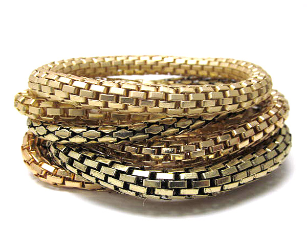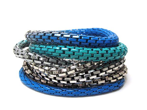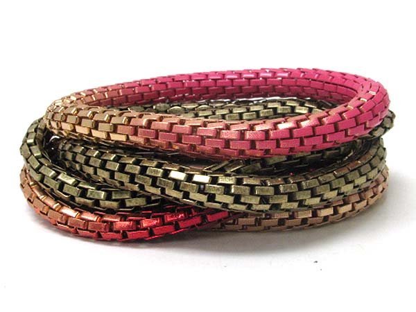 Multi row mixed color metal elastic chain bracelet set