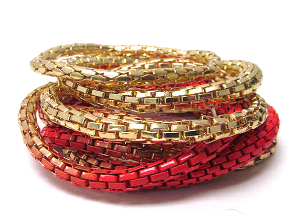 WHOLESALE MULTI ROW MIXED COLOR METAL ELASTIC CHAIN BRACELET SET 370748