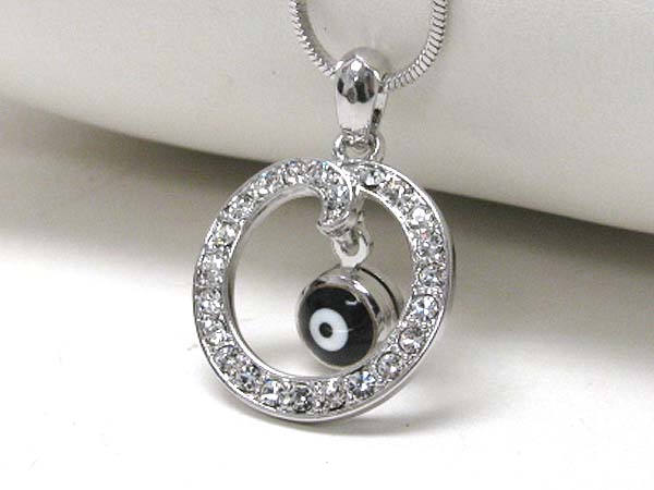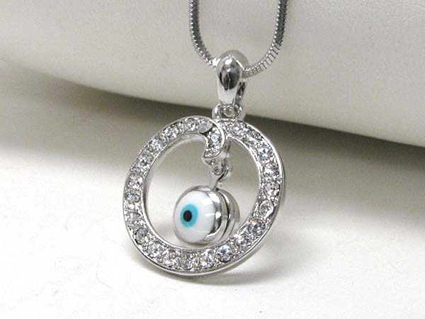 WHOLESALE MADE IN KOREA WHITEGOLD PLATING EVIL EYE DANGLE CRYSTAL STUD CIRCLE PENDANT NECKLACE 370867