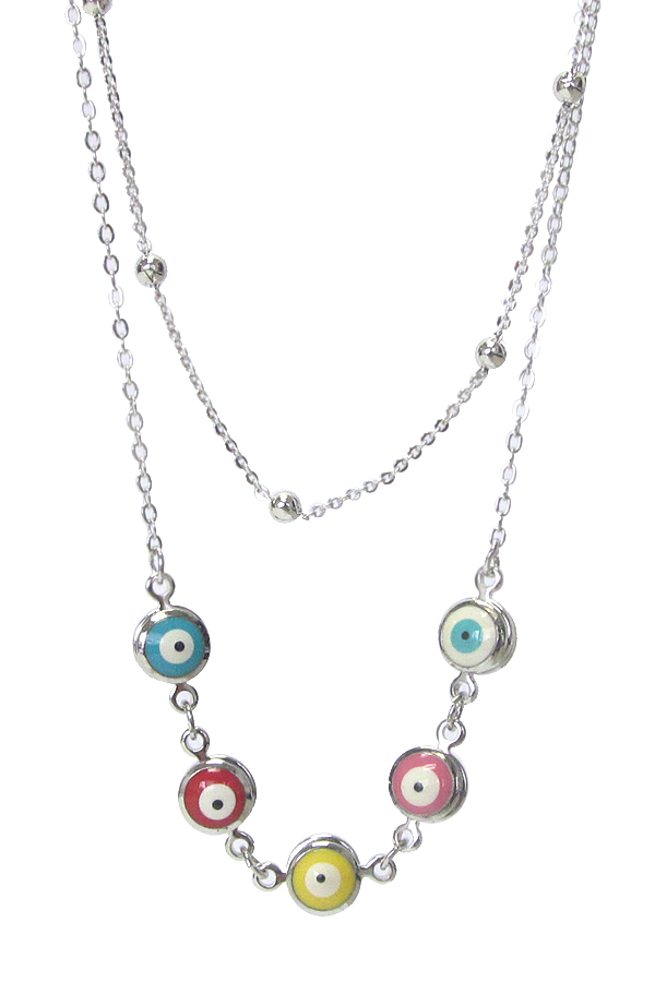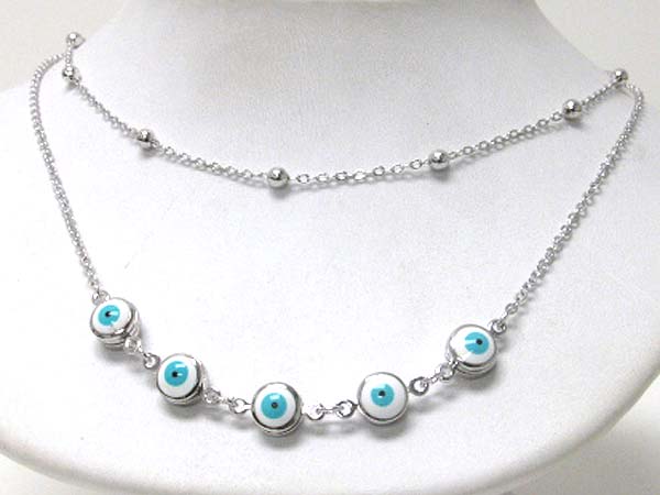 Made in korea whitegold plating double layer five evil eye link necklace